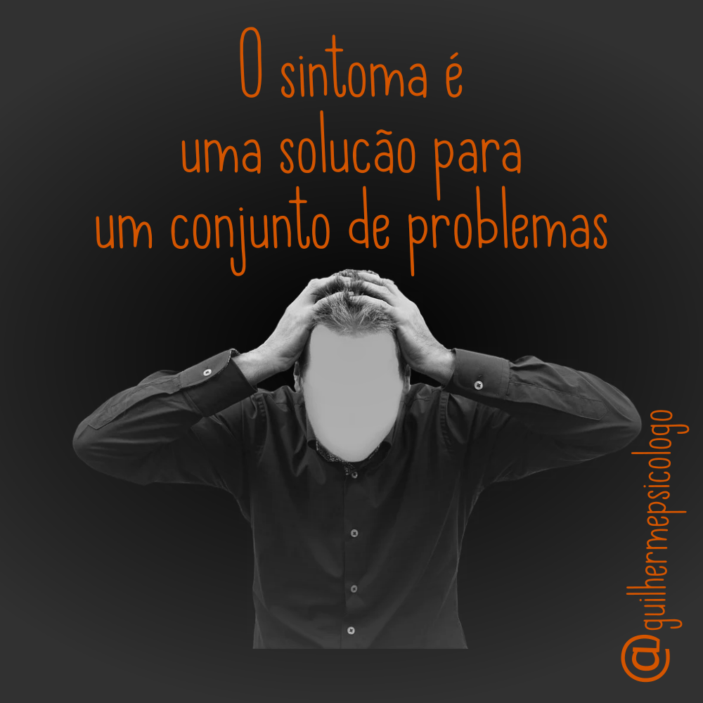 Insônia, ansiedade, formigamentos, dores crônicas, distúrbios sexuais, choros e desmaios. São formas bem comuns de lidar com os problemas pessoais. O sintoma cobre o buraco de um lado e descobre do outro. Em alguns casos o indivíduo está plenamente bem com seu sintoma até que algo mude e seu caro amigo sintoma comece a gerar sofrimento. Sofrimento acontece com sintomas ou sem, e por causa do sintoma, ou por causa de qualquer outra contingência.